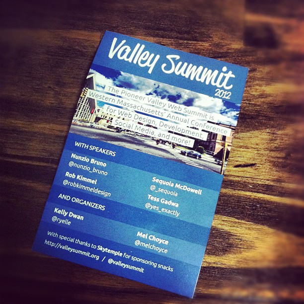 Picked up a proof for the @valleysummit schedule 0 August 17, 2012 Written by Mel Choyce Share this: Click to share on X (Opens in new window) X Click to share on Facebook (Opens in new window) Facebook Like Loading... Related
